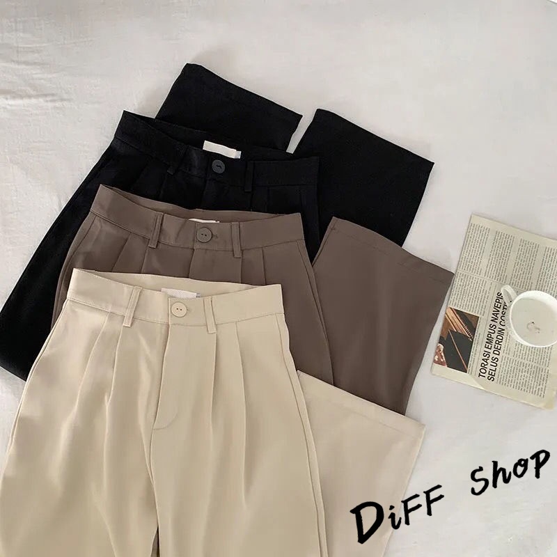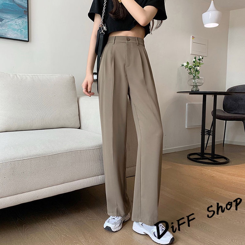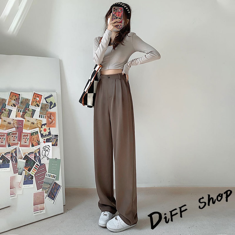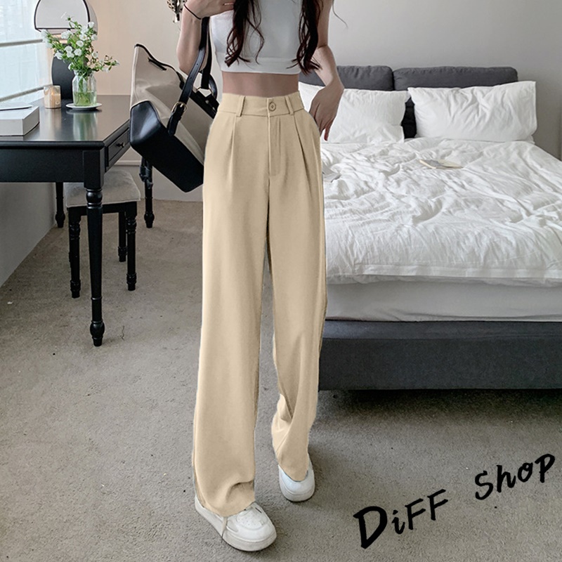 【DIFF】韓版黑色小個子高腰直筒垂感休閒西裝褲 寬褲 褲子 黑褲 長褲 休閒褲 女裝 涼感褲女 透氣長褲【P130】