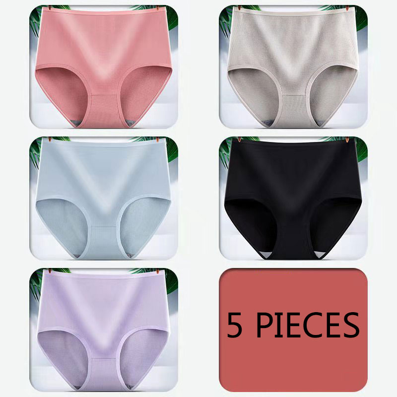 5PCS Plus Size Women High Waist Panties Lingeries Ladies Breathable Cotton Underwear Women Panties Briefs