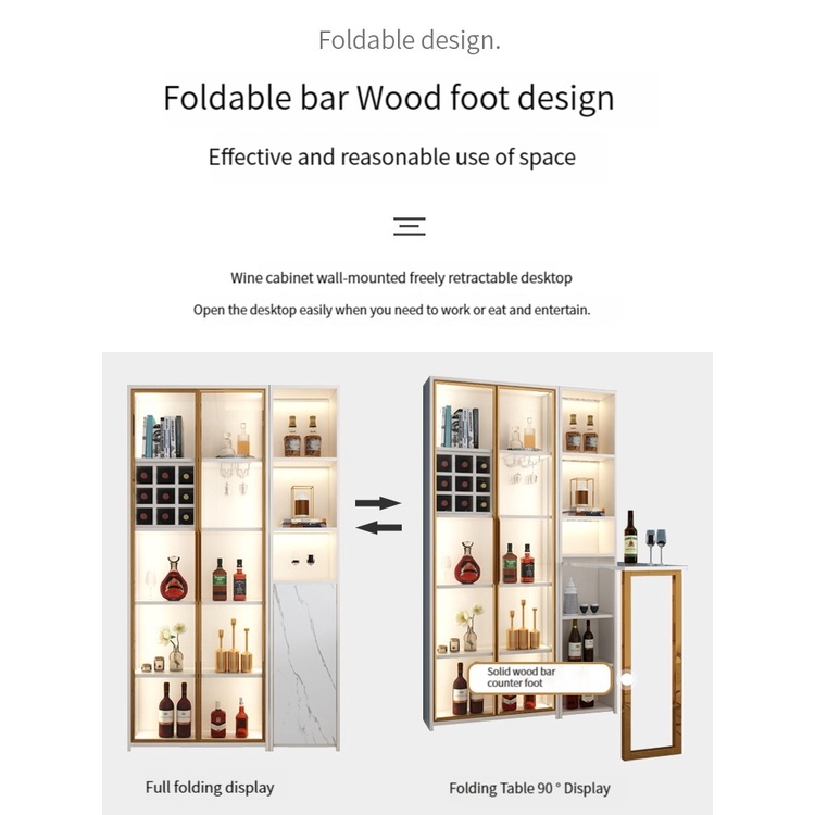 Modern and Simple Wall-Mounted Wine CabinetGlass Display Cabinet, Light Luxury Storage Cabinet Foldable Bar Counter