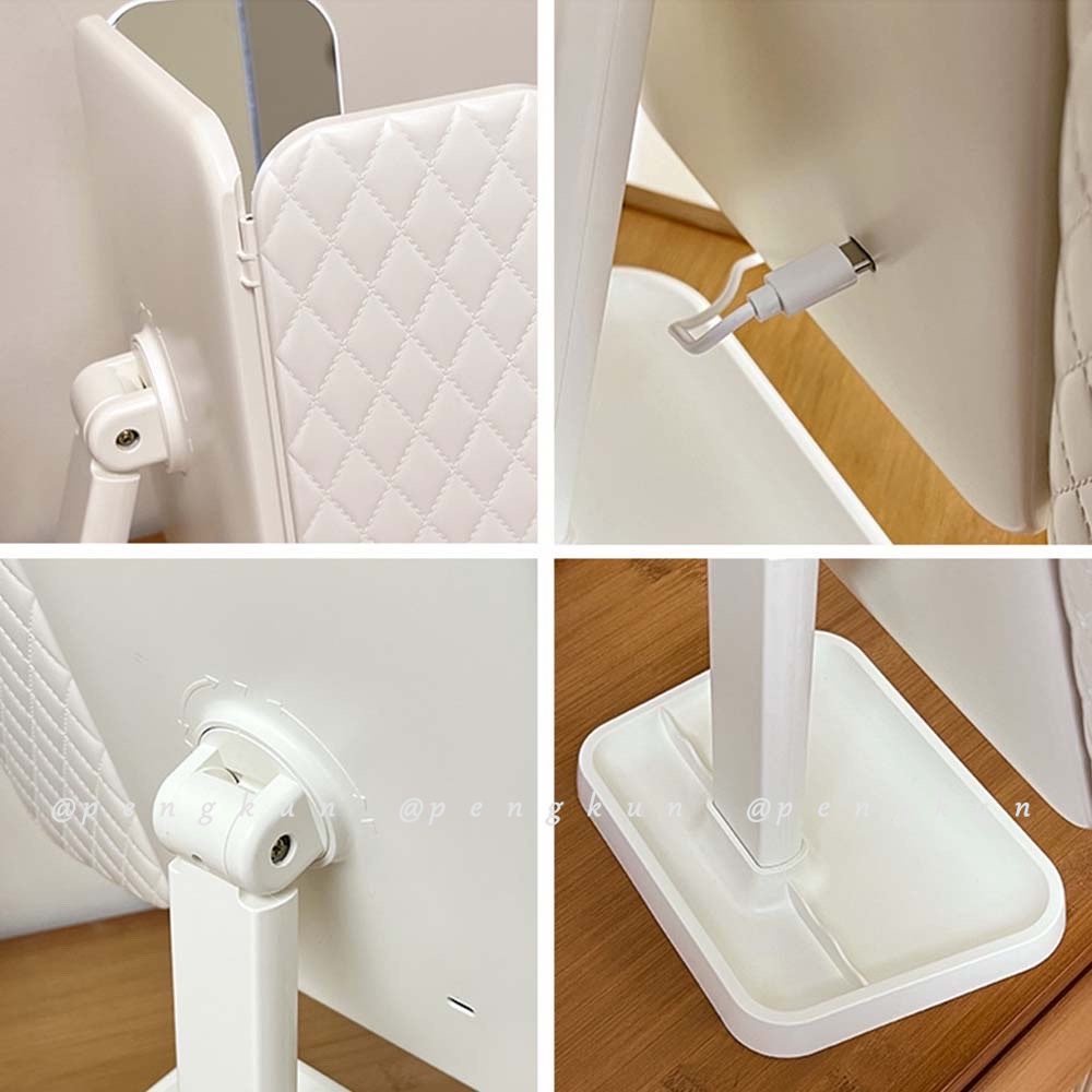 Shell Double Door led Makeup Mirror With Light Storage Box Integrated Desktop Foldable Adjustable Student